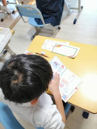 「どんなクイズにしようかな。」「1年生にもわかるかな?」などそれぞれ思いを巡らしながらていねいに記入してくれました。