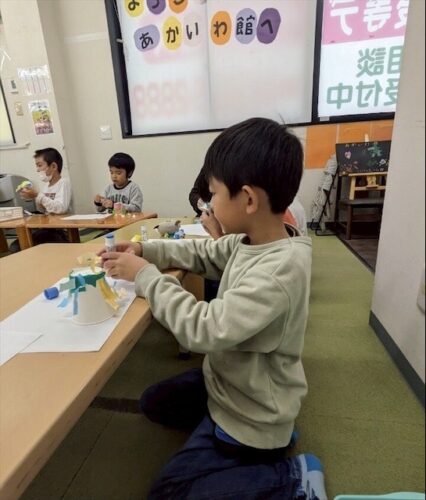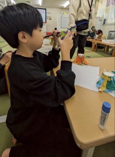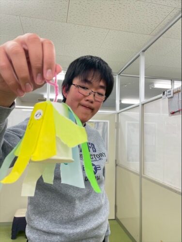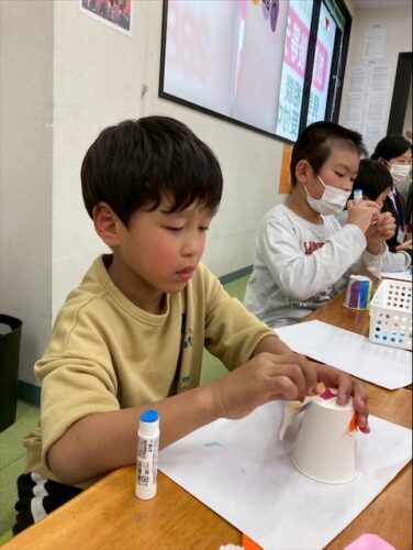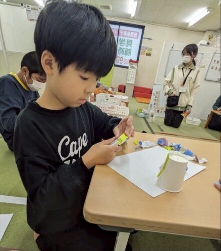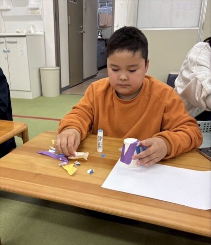 活動で紙コップと折り紙を使ったみの虫の制作をしました!