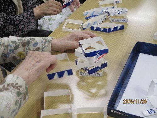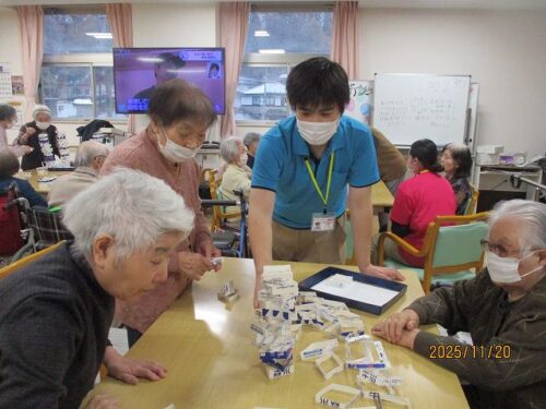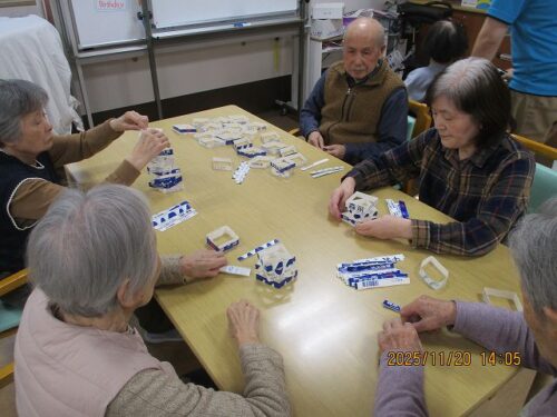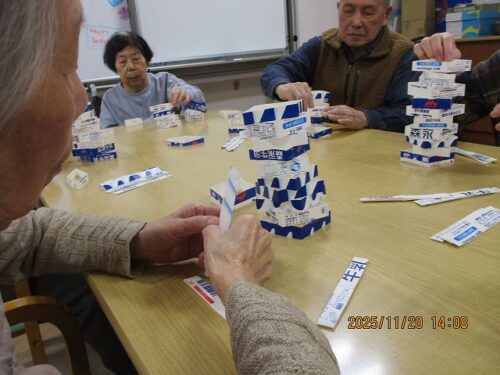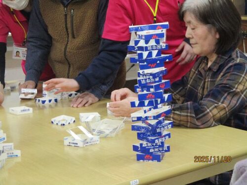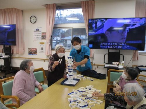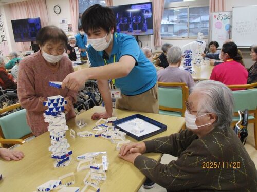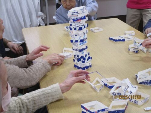 数人でチームを組み、輪っかをどんどん積み重ねていき、一番高く