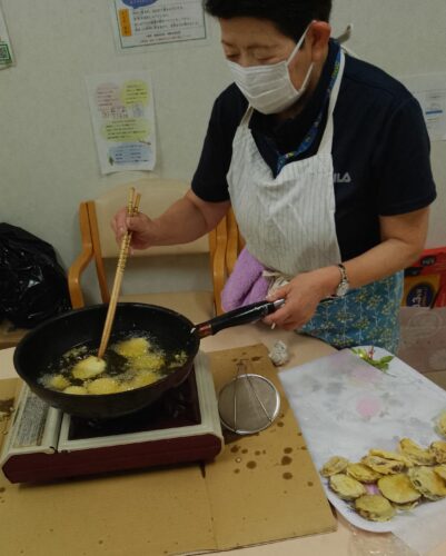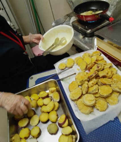 本日は先日収穫したさつま芋を天ぷらにして皆様に召し上がって