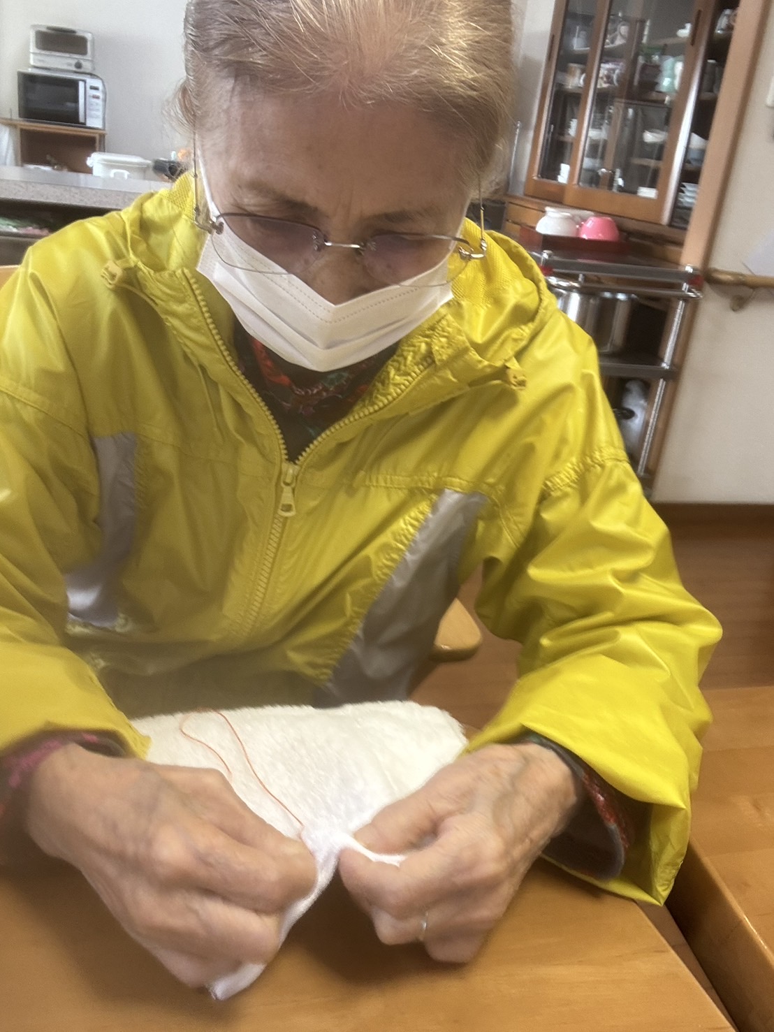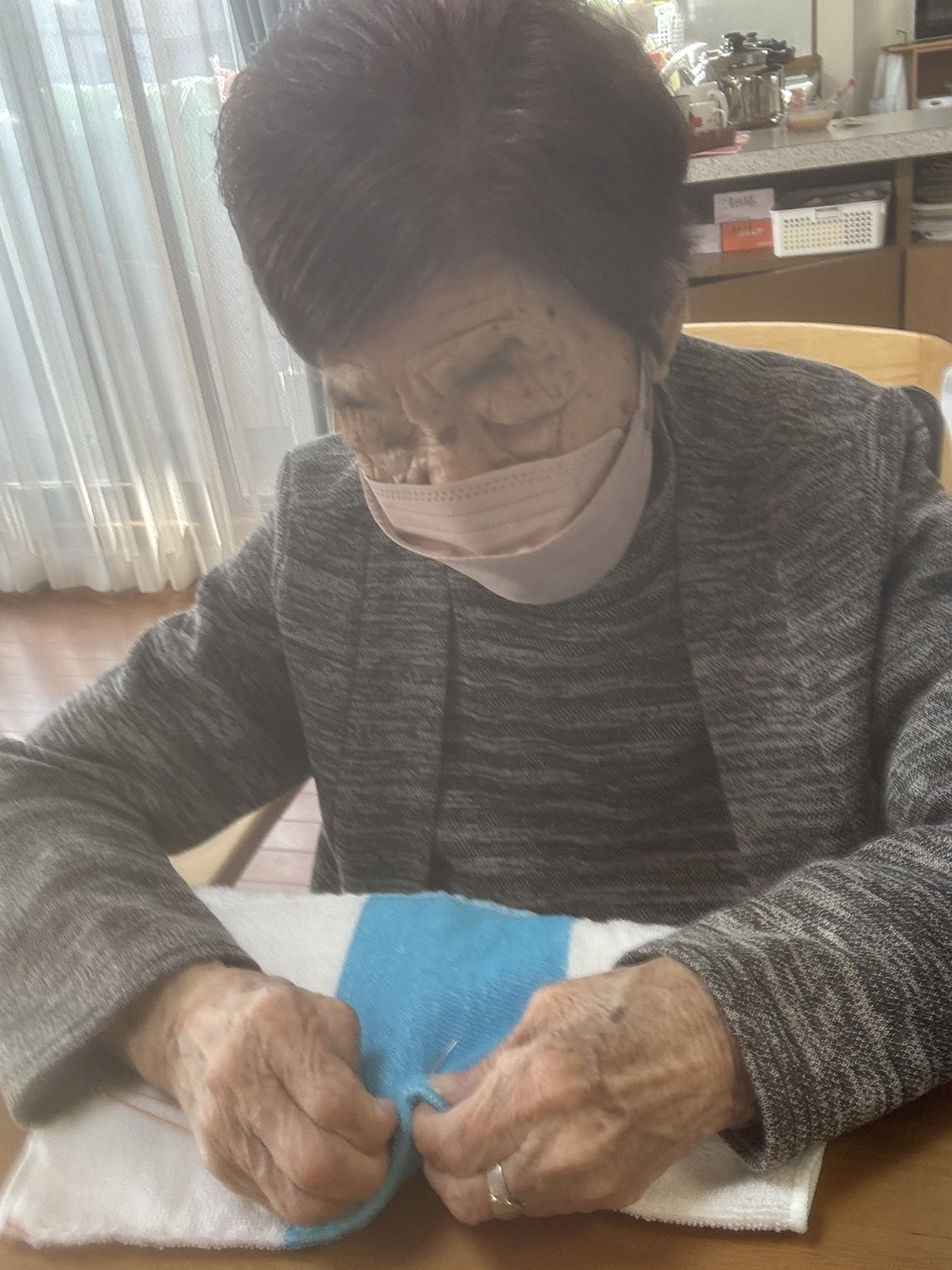 さわやかグループホームあゆみ ☆雑巾☆ 2025-11-21 2025-11-21 こんにちは!! 最近とても寒くなりました!! 今日は、ご入居者様に、雑巾を作成して頂いてます。 とても器用で羨ましいです!!