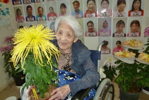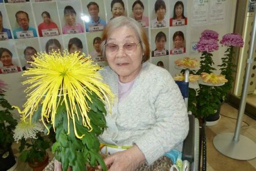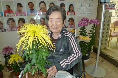 さわやかいなざわ館 菊の花と一緒に♫ 【さわやかいなざわ館】 2025-11-21 2025-11-21 皆様、こんにちは🌞 菊の花🌼と一緒に 🎶 立派な菊の花と一緒にハイポーズ 👌 綺麗な花の前で、今日一番の笑顔でポーズをとってもらいました。💗 担当:鈴鹿