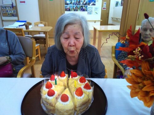 11月2日で82歳の入居者様です。お元気にロウソクの火を消して下さいました。