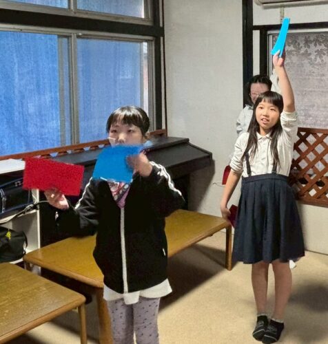 出たカードの色の旗を取るゲームです‼️