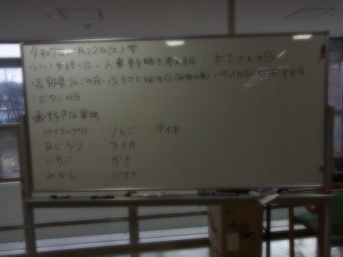 さわやか室蘭弐番館 2階 22日活力朝礼♪ 2025-11-23 2025-11-22 皆様こんにちは♪ 昨日の様子をお届けします 日付と天気を確認後はラジオ体操です 頭の体操は好きな果物お答え頂きました🍉 穏やかな一日になります様に☆