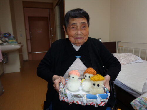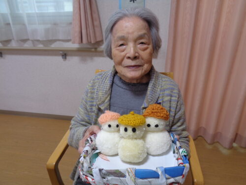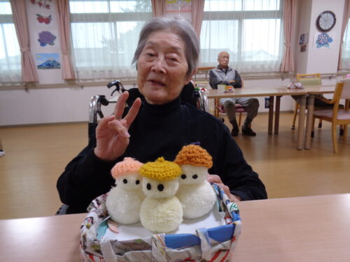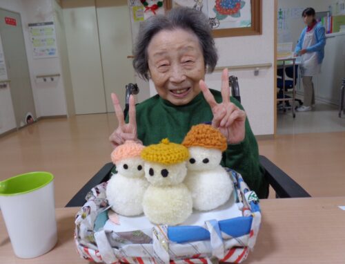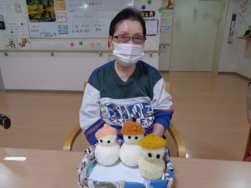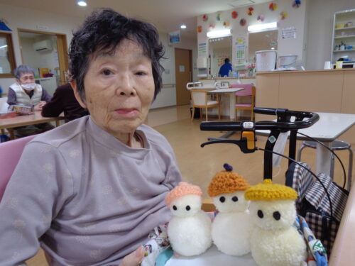 入居者様手作りの雪だるま3兄弟と記念撮影📷✨