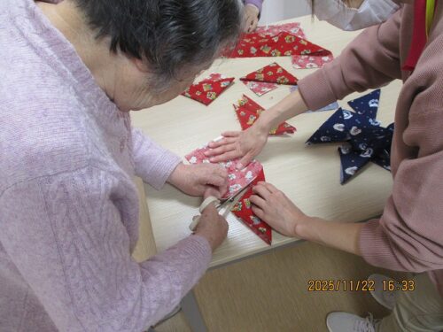 今日はクリスマスに向けてガーランド作りをしました(*^^)v