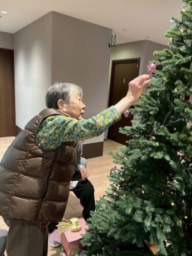 先日、目白の里名物のツリー🎄飾りつけを入居者様と行いました✨