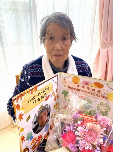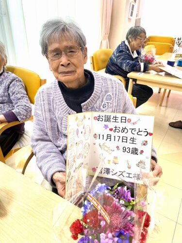 さわやかかぬま館 SS誕生会【さわやかかぬま館】 2025-11-23 2025-11-23 SS11月生まれの誕生会! 今月は昭和16年生まれのO様と昭和7年生まれのY様の誕生月です! お花と、お祝いの色紙を送り、皆様で祝福しました! おめでとうございます! 担当☆木主
