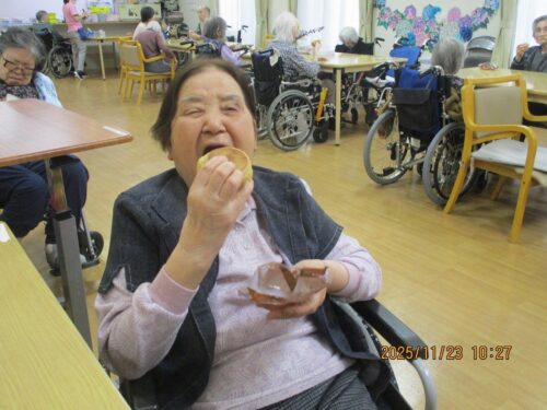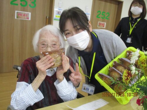 優しい入居者様、先日息子様、親戚の方とお祝いのケーキ🎂を