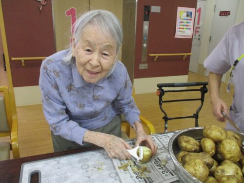 一番多いい🥔じゃがいもは職員全員で皮むきに集中☺