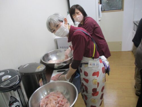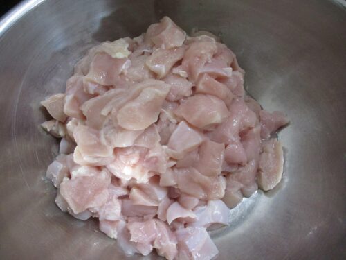 砂糖とお水に鶏肉を付けておくと柔らかくなります・・・。