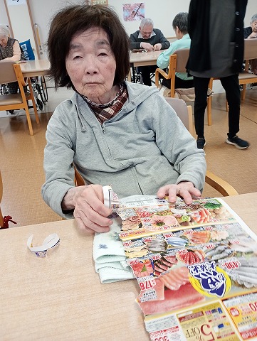 2階さんは誰が長くちぎれるか?!広告ちぎり競争が行われました。
