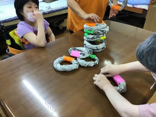 皆さん、ドキドキしながらそーっと積み重ねていますね