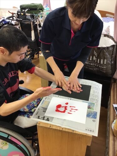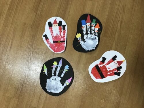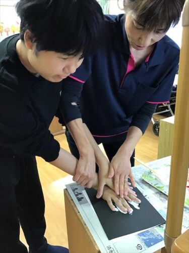 まずは絵の具をつけて手形をとっています🙌