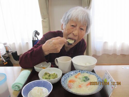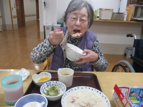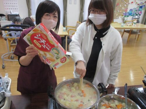 入居者様と職員で一緒に作ったシチューはとっても美味しかったですよね☺