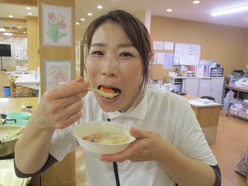 美味しくできたかなぁ(*^^*)・・・職員も一口味見!!