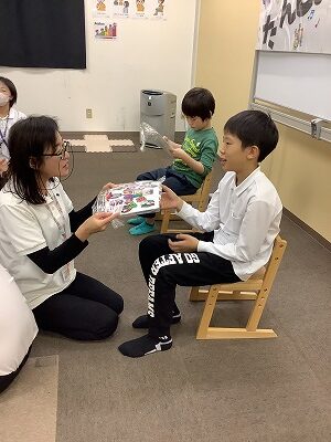 スタッフから、心を込めたプレゼントを手渡しします。 プレゼントを受け取ったお友達は、少し照れくさそうにしながらも、とても嬉しそうな表情を見せてくれました。