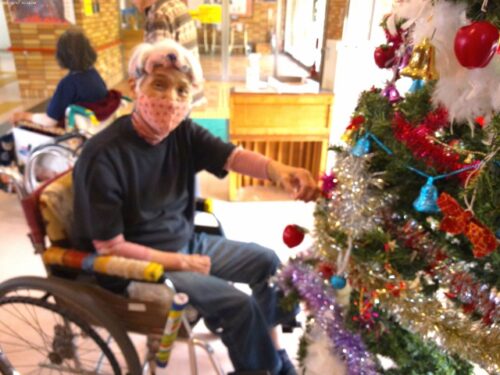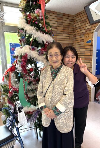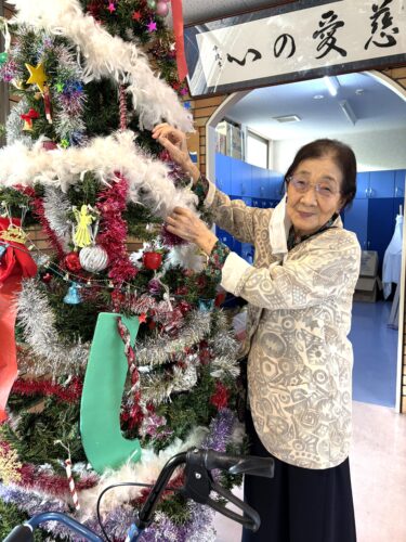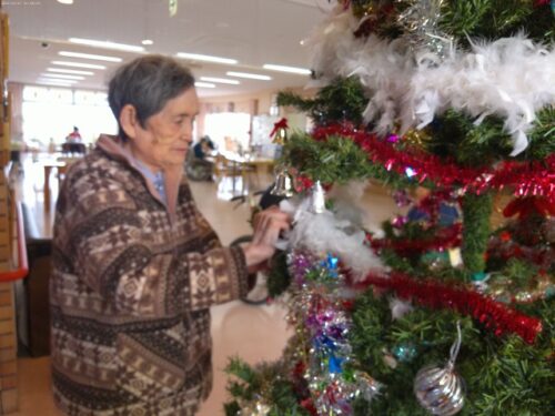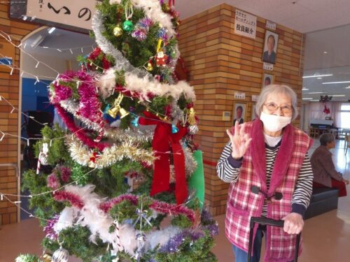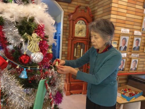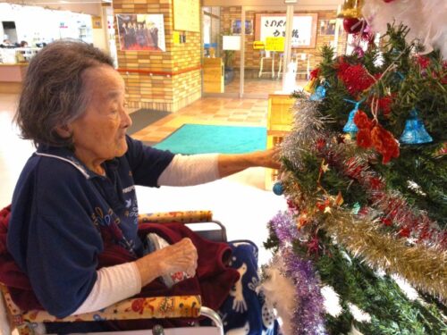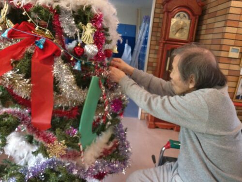 玄関ホールの大きなクリスマスツリー🎄は、入居者様にもお手伝いして頂きました。