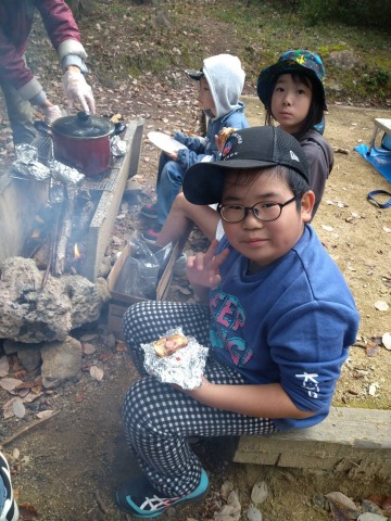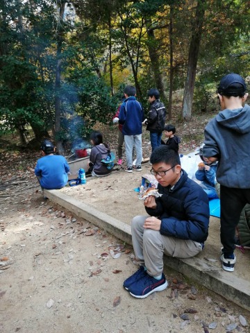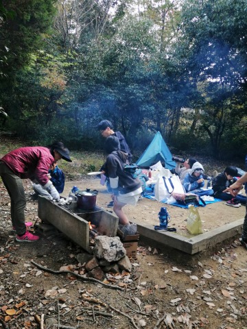 場所は長船美しい森です。今回は炭に火を入れ、昼食を調理しました。