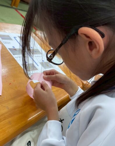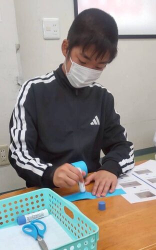 紙を切り分けて、のりで貼り合わせたり