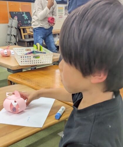 ネコやトナカイ、カービィなど、思い思いに描いた顔をつけて完成です🖊️ 放り投げても必ず顔が上になるので、