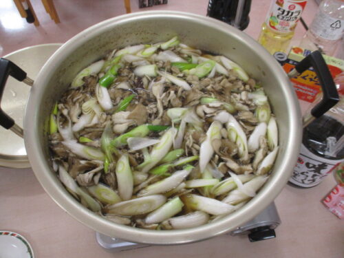 朝の活力朝礼時から鍋の下準備が始まっていて、1Fホールに美味しそうな匂いが漂っていたので