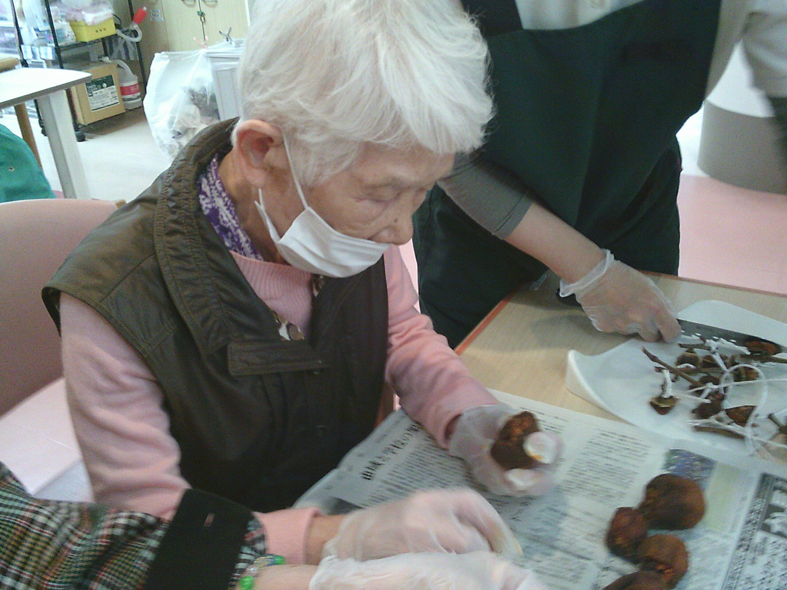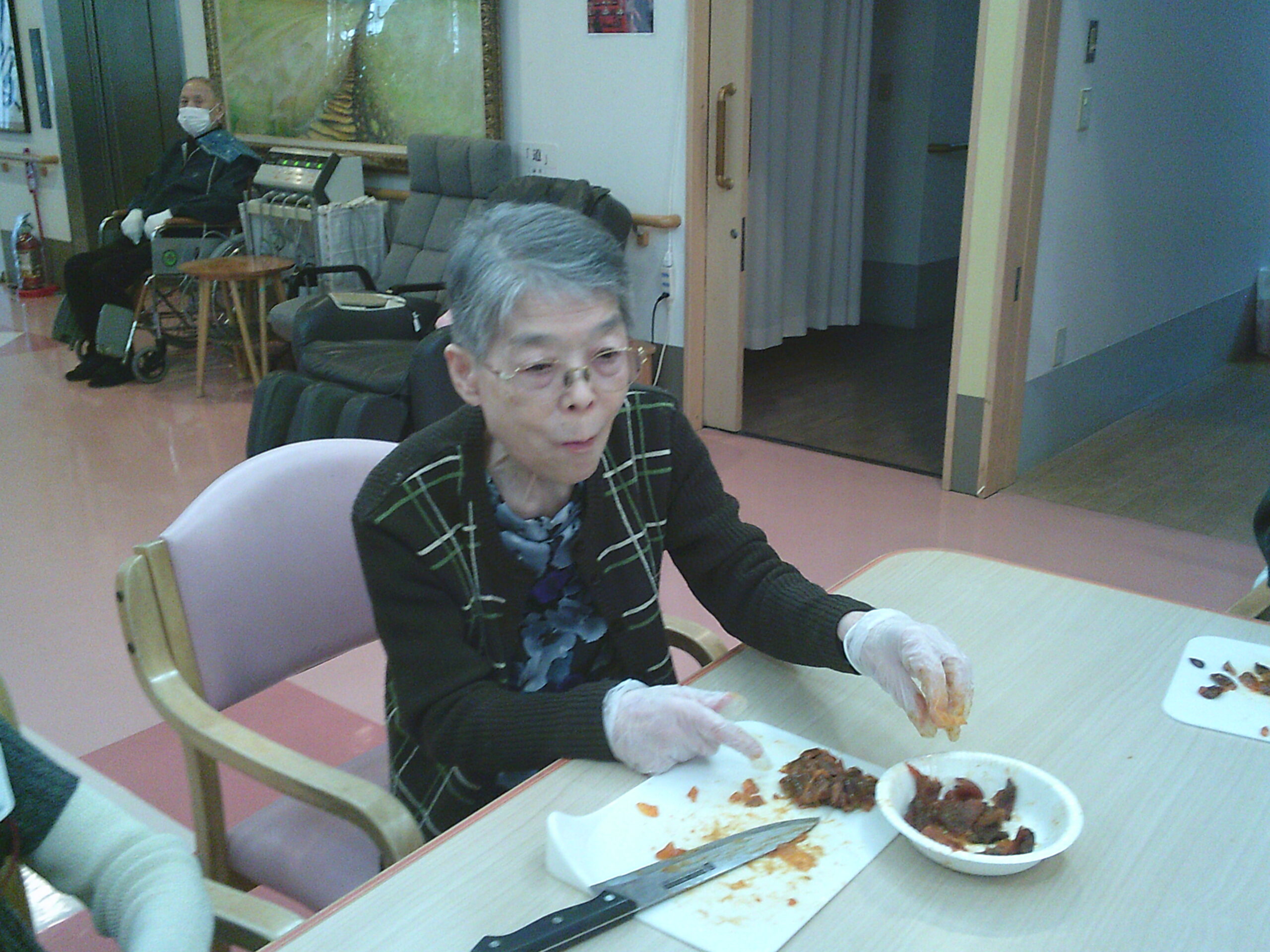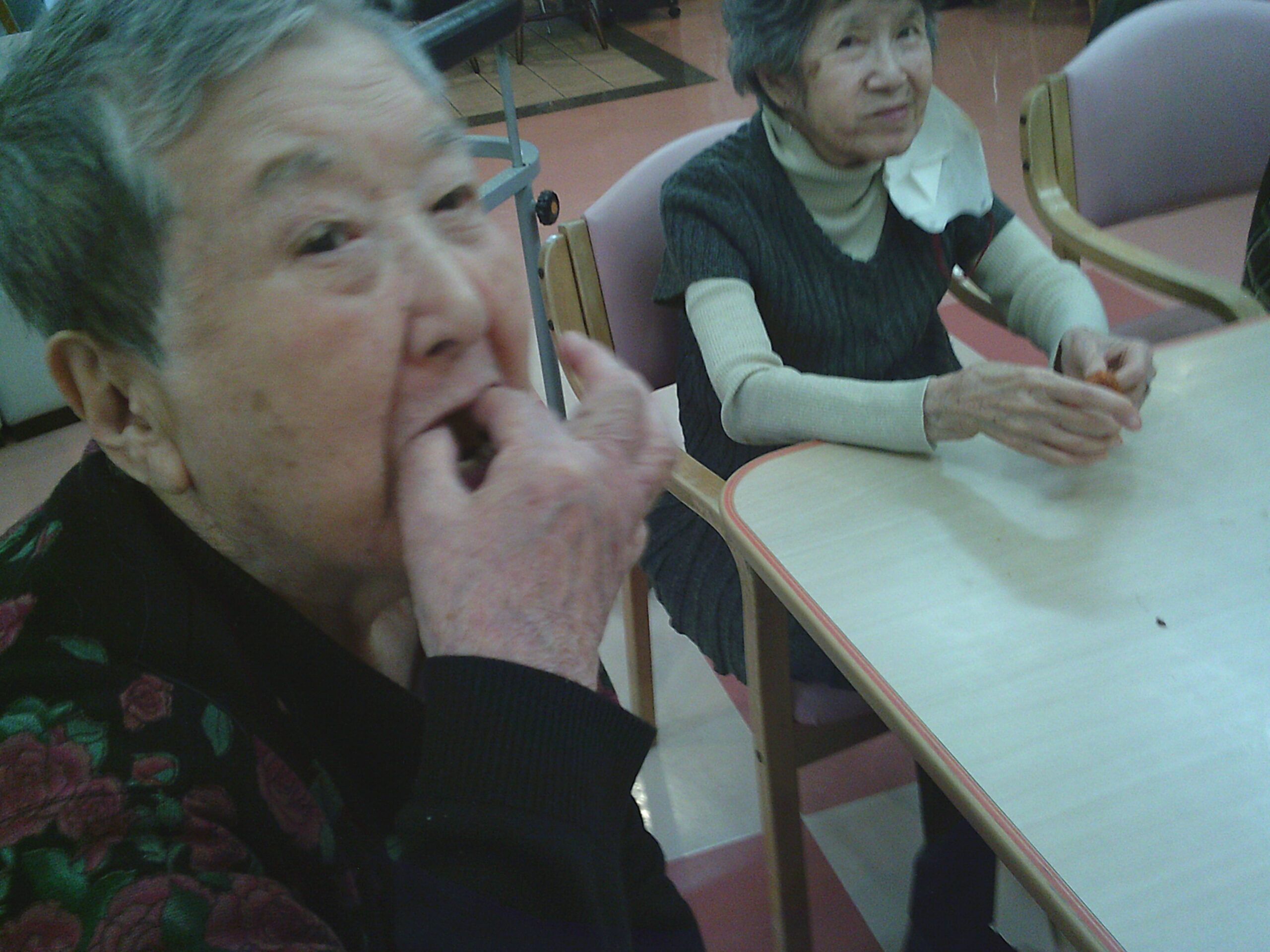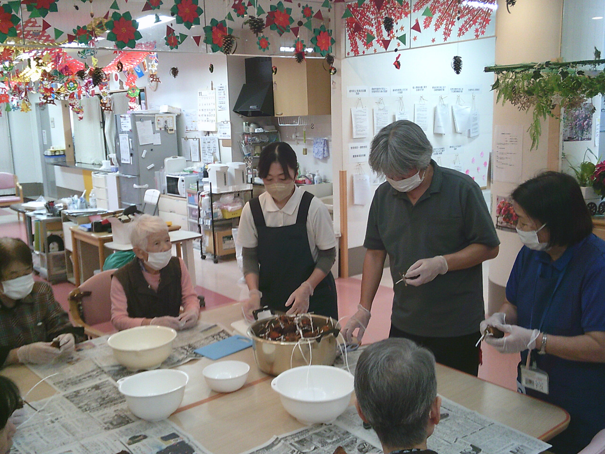 さわやか花美館 干し柿 2025-11-30 2025-11-25 いよいよ干し柿を食べれる時がやってきました 入居者様には柔らかい状態で召し上がってもらうため、固くなる前に食べます へたと種を取る作業から始めます 協力してもらったので早く終わりそう 作業中に我慢できずにつまみ食い(笑) 甘くておいしいと言ってました!! 手伝ってくれた方で先に味見をしました たくさんあったのでこの後のおやつが食べれないくらい味見していました(笑) 干し柿つくりのお手伝いをありがとうございました
