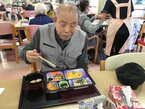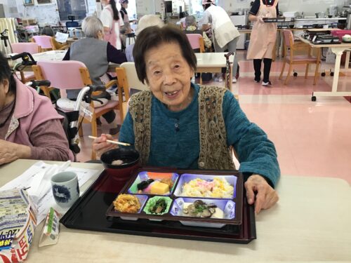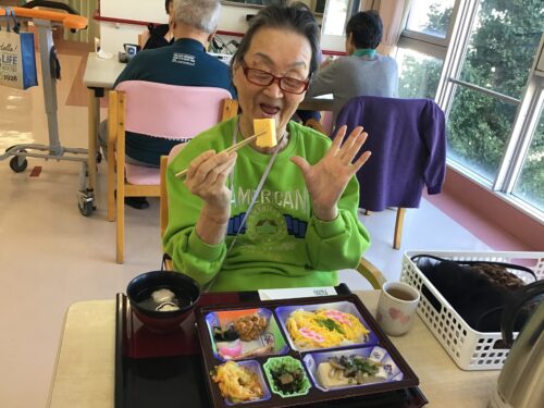 さて、先日デイサービスのお昼ご飯に「秋の行楽弁当」をお出ししました🎶