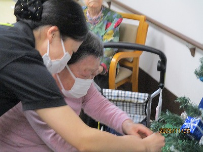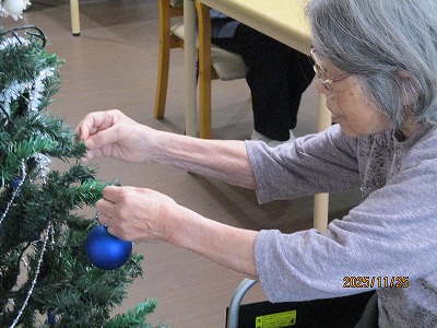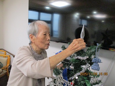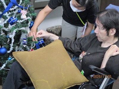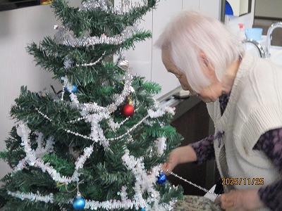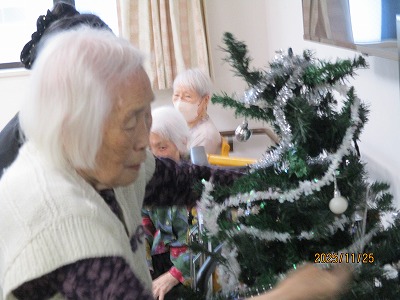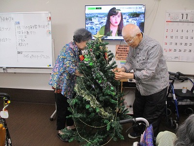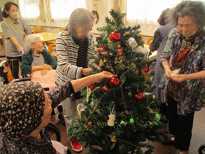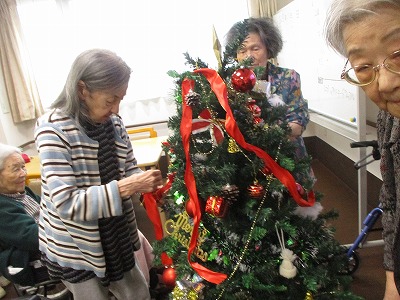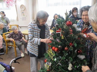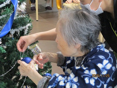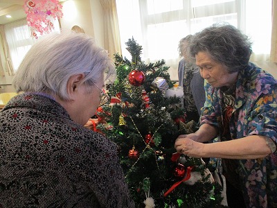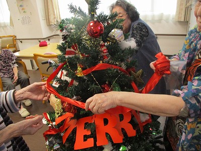 入居者様と職員が協力してとっても綺麗なツリーとなりました(⌒∇⌒)