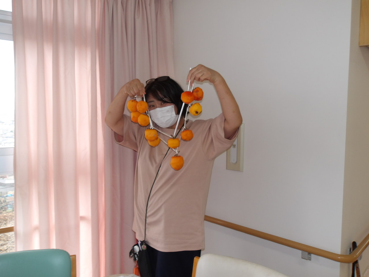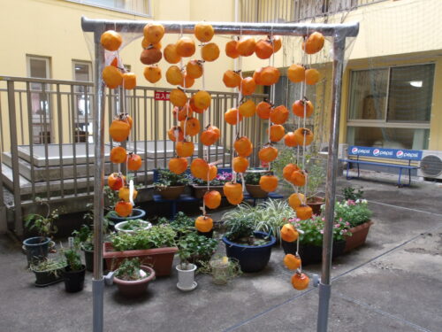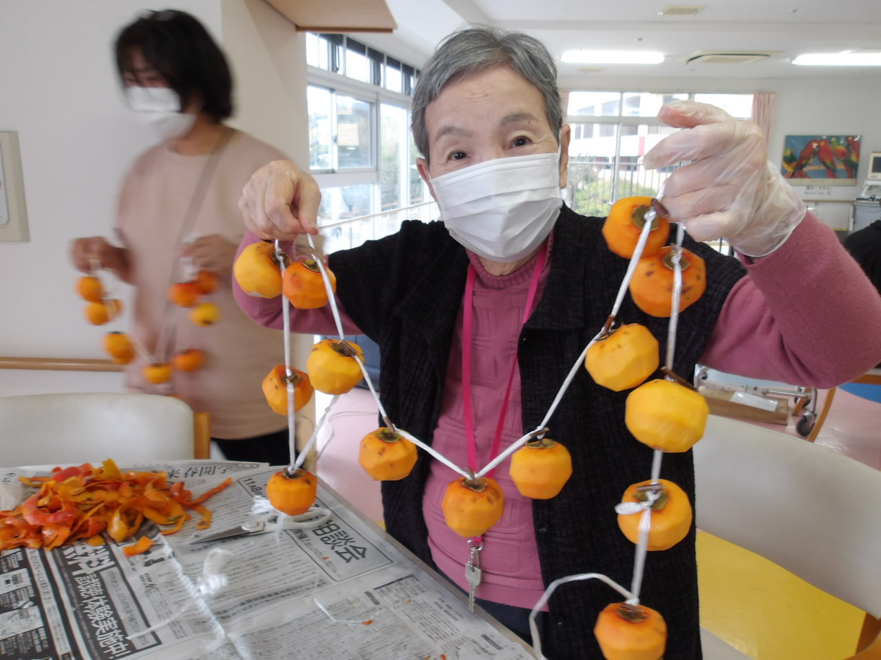 柿をひもで吊るす作業ですね!完成まであと少し・・・