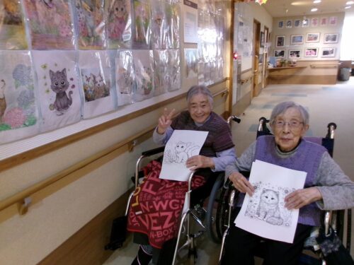 塗り絵の展示を見て談笑されているところをキャッチしました😆