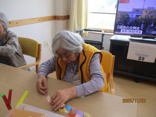 来月のクリスマス会に向けて館内飾りつけの作成を