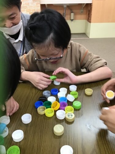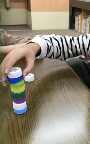 ペットボトルのキャップを何個積み上げられるかやってみよう🫳