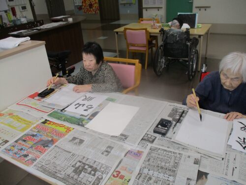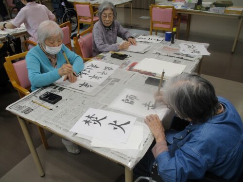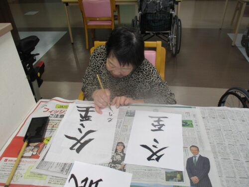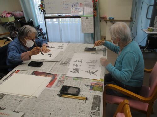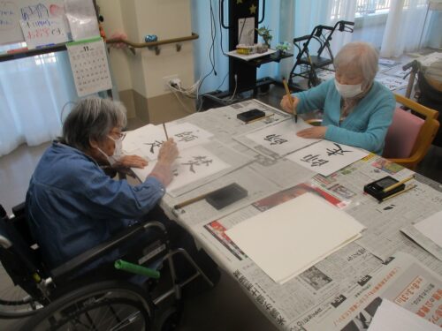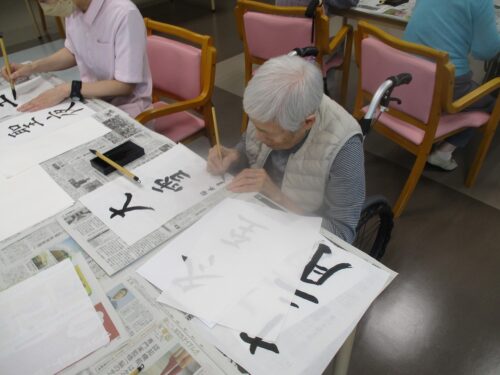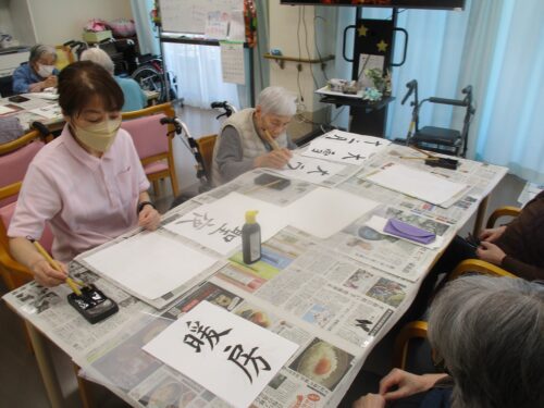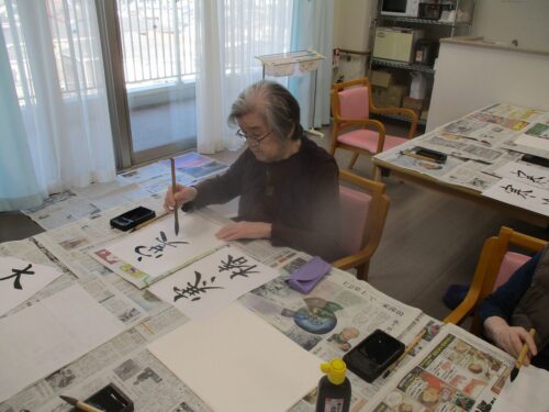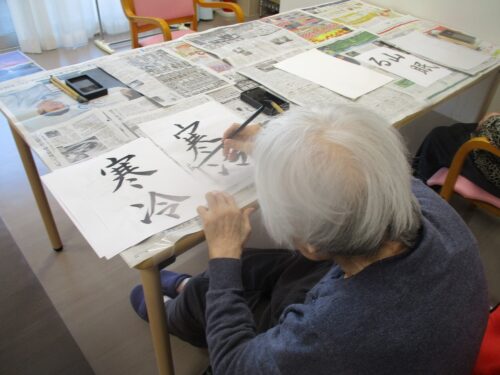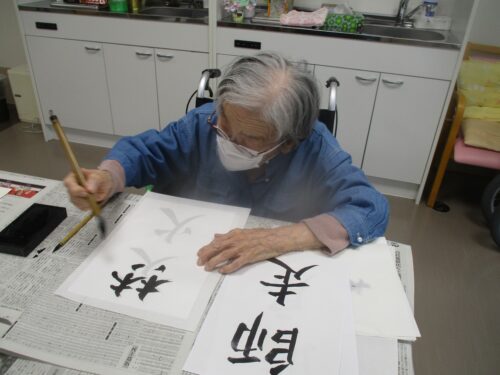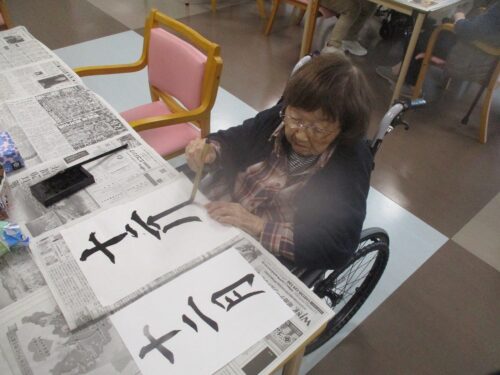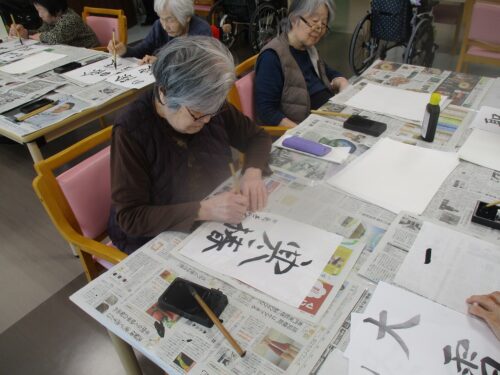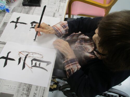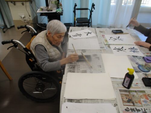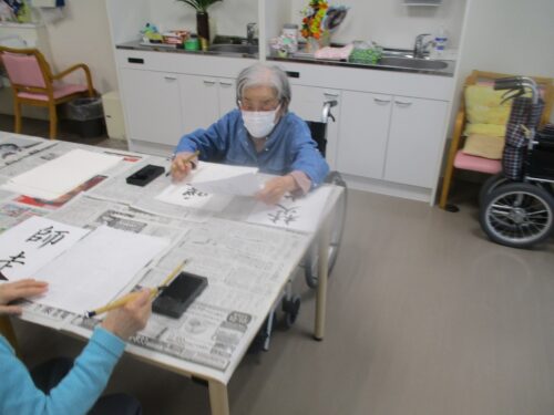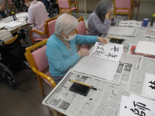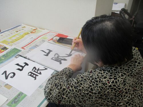 山眠る、年越しそば、12月等簡単時から難しい字まで選んでいただきたくさん書きました。