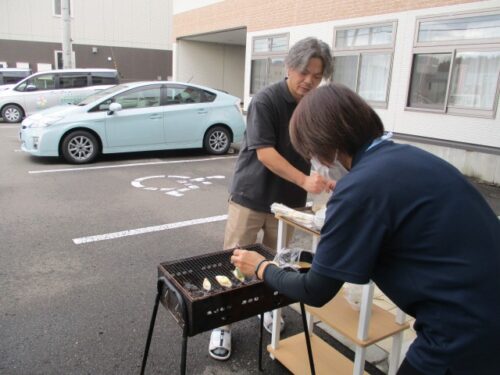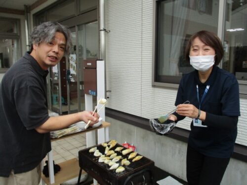 細川ケアマネも、餃子焼きながら