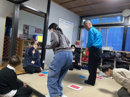 まずは職員さんと一緒にしてみるよ!