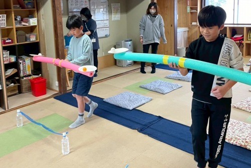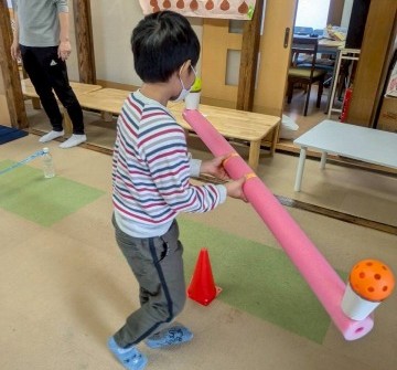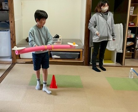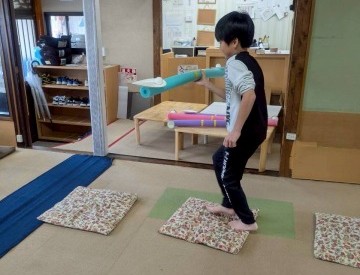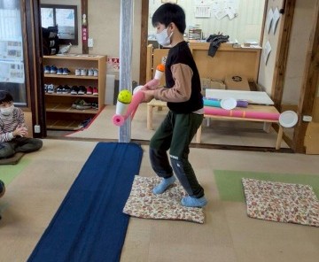ボール等が落ちないようにコースを歩きバランス感覚を養う【運動・感覚】