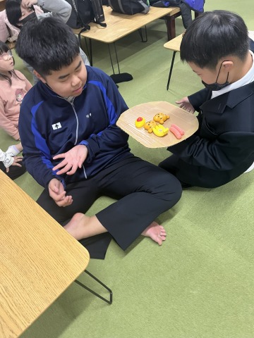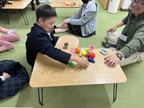 ペアでゲームを行ない、品物を乗せる人、受け取って並べる人と分かれました✨