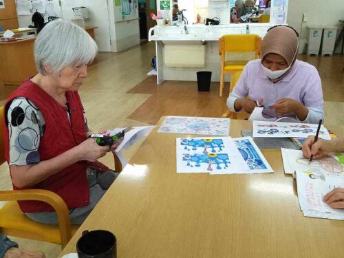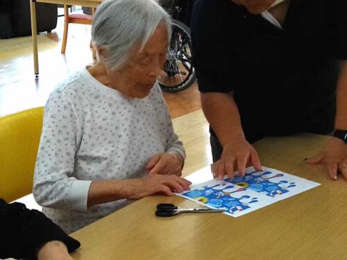 さわやか柏館 1F夏飾り工作 (さわやか柏館 千葉県柏市介護付き有料老人ホーム) 2024-08-07 2024-08-24 こんにちは! 8月7日(水) 1Fで夏飾り工作を行いました! 細かい作業になるので、手元に気を付けて切っていきます! まだ完成ではありませんが、館内がもっと華やかになりそうです 機能訓練員 松本
