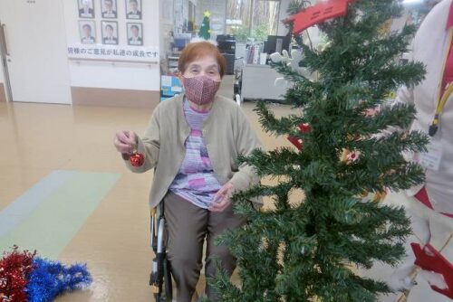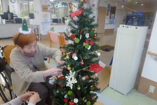 飾り付けは入居者様にも手伝っていただきましたよ。