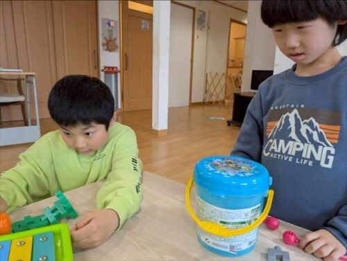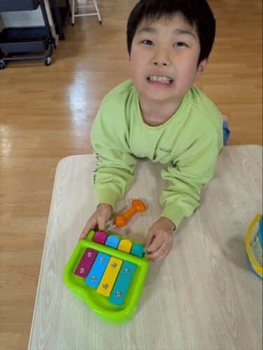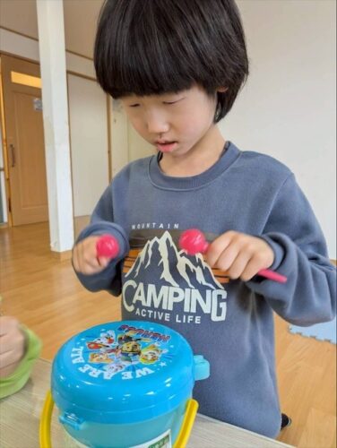 楽器を出すと流れてくる音楽に合わせて太鼓や木琴をならす児童も😆