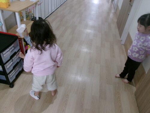 保育室では1歳児さんが待っていてくれました
