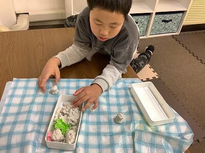 手先の集中力と創造力を養うねんど遊びも人気です。 冬らしく、雪だるまや雪の景色をイメージして、夢中になって作品を作っていました。 職員も一緒に、どうしたら上手く丸くなるかな?とアドバイスをしながら、個性を活かした素敵な作品が次々と生まれていました!