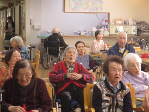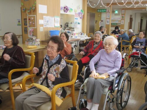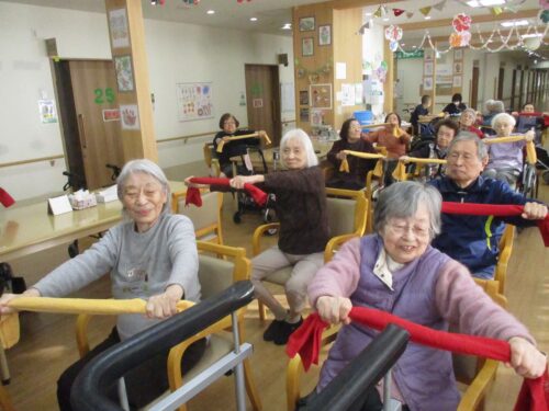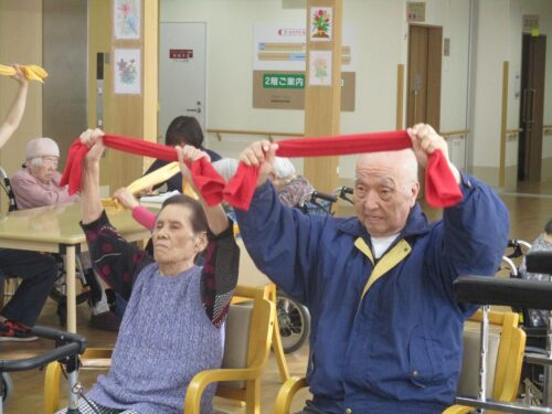 横山介護職員に合わせて元気よく行きましょう(⋈◍>◡<◍)。✧♡