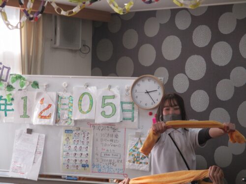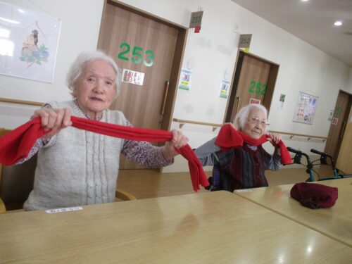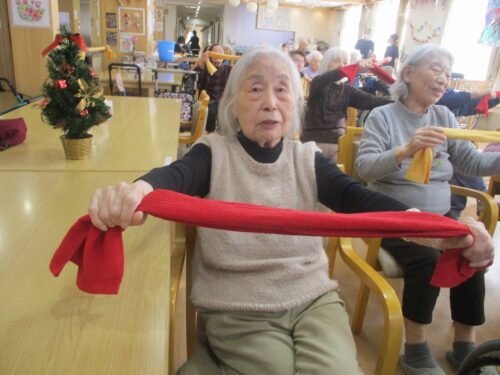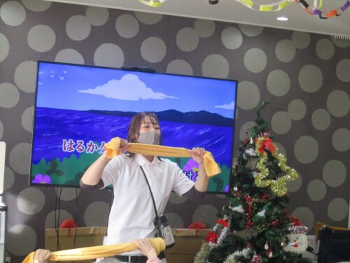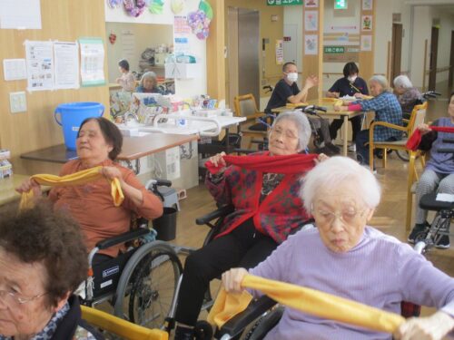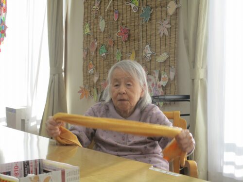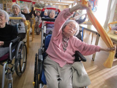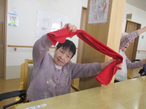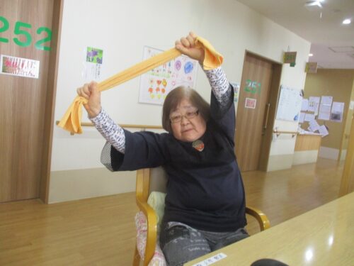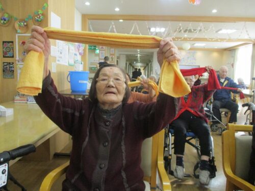 お次は・・・リズムに合わせてタオル体操になりま~す