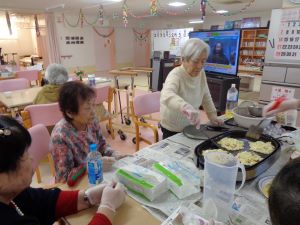 本日の調理レクは『 倹約お好み焼き 』でした。