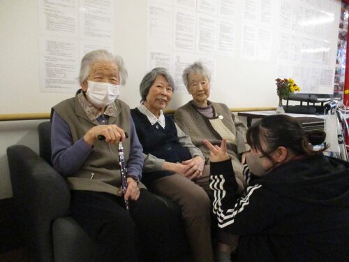 カメラに気付いたご入居者様が、ピースを向けて下さりました😊