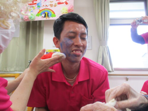 他職員から遠慮のないファンデーション攻撃を食らわせます!(笑)