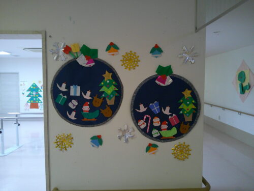 さわやかゆう輝の里 21日のクリスマス会の飾りを一緒に行いました🎄 2025-12-08 2025-12-08 玄関の飾り一緒に行いました。 ⛄雪だるまのお迎えです⛄ 手作りツリー ツリーに貼りました。